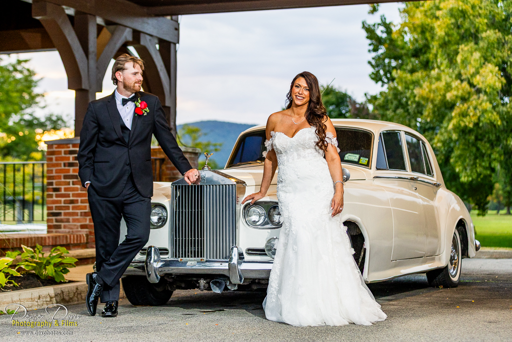 After the ceremony, we moved on to portraits. Some of our favorite shots were with a striking vintage car parked just outside the venue. Alicia and Shelley looked absolutely stunning, their joy and love shining through every photograph. As the sun began to set, we took advantage of the golden hour for some breathtaking sunset portraits on the golf course. The soft light, elegant attire, and emotional connection between the couple made for unforgettable images.