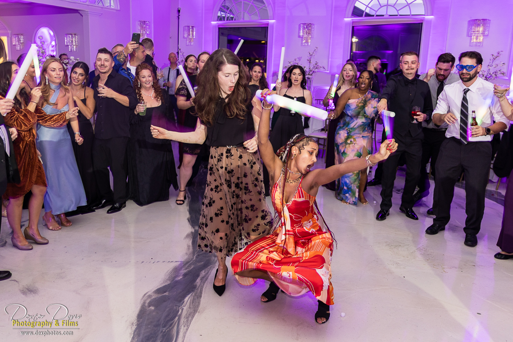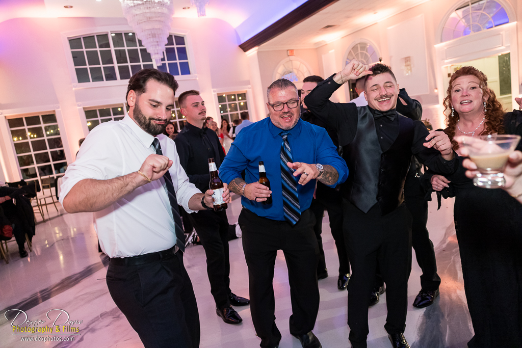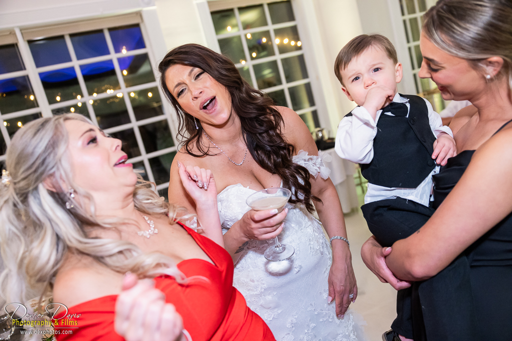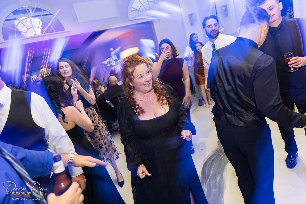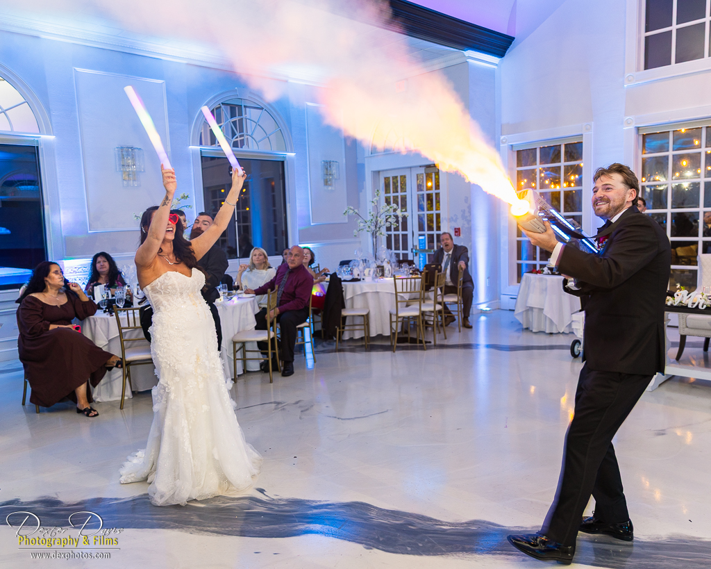 The celebration continued indoors, where guests were treated to heartfelt toasts, delicious food, and great music. The décor echoed the wedding’s color palette, with black linens, red roses, and candlelit tables setting a romantic scene. Alicia and Shelley’s first dance was a highlight, surrounded by their loved ones and the warm glow of the dance floor. Once the party really got going, the dance floor came alive with energy—drinks were flowing, the music was pumping, and the smoke gun added a burst of excitement to the night.